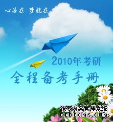 最近,很多同学来信要求我指导一下2010年的复习计划,特别是英语复习应该怎样安排?甚至有些同学对待考研表露出复杂情绪,认为进步太慢,担心失败。对此我特意为大家拟了一个10年考研复习计划。