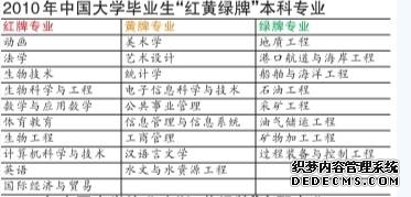 2010年中国大学毕业生“红黄绿牌”本科专业