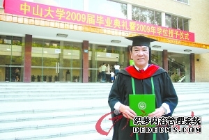 本报讯 (记者徐静 通讯员王丽霞)昨日下午,中山大学第十一场毕业典礼上,一位国际汉语学院的本科毕业生也成为全场瞩目的焦点。他就是66岁高龄的洪敦安(ANG TOON AUN)同学。当洪敦安学士身着学位袍走向受礼台时,黄达人校长亲切地握住他的手,为他颁授学位证书,全场响起经久不息的掌声。