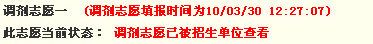 (2)“调剂志愿已被招生单位查看”,即你所提交的调剂志愿已经被调剂单位查阅过了,一般说来,如果调剂学校对你有意思,就会点进去看你的志愿,那么当前状态就会显示这个内容,不过“已被查看”只是说明你这个西瓜已经被买主拨弄了一下,至于买主是否决定要买你,则是另外一回事儿,因此不要高兴太早;(见下图 8)