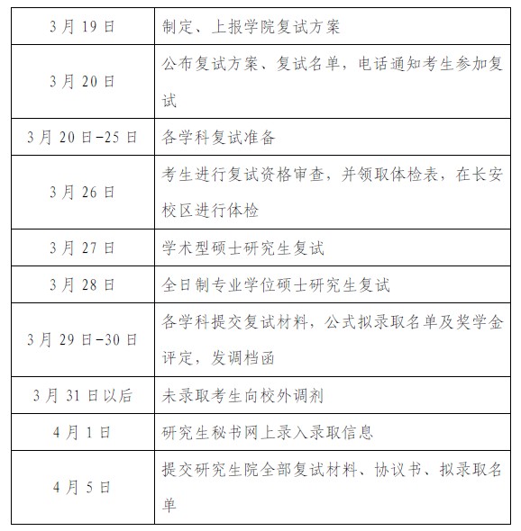 学术型硕士研究生和全日制专业学位硕士研究生分别进行复试,复试内容分为四部分:外语水平测试(含听说能力)、专业知识笔试、综合素质面试、实验技能考核,每个部分满分均为100 分,其中第四部分只针对全日制专业学位硕士研究生。