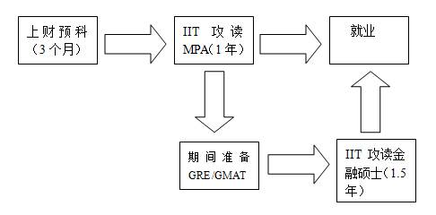 国内3个月预科学习,结业后赴美国IIT学习1年获得公共管理硕士学位(MPA)。在此期间,学生可以考取相应语言和GRE/GMAT成绩,申请继续攻读1.5年获得金融硕士学位。