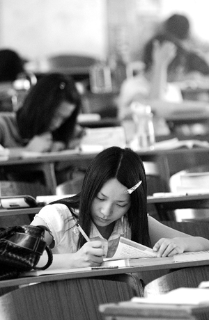 他们所在的年级236名同学中,有85人留校,其中考研的就有45个,比例在留校生中超过一半。由于天气闷热,教室里的电扇根本不顶用,张楠经常坐一个上午衣服就被汗水浸透,“但为了考研成功,我要咬咬牙坚持下去”。