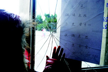 “就怕他们抢座混乱,大门玻璃都挤破好几次了。”老大爷说,自习室的玻璃经常被抢座的学生挤碎。他指着大门玻璃无奈地说,已经修过好几次了,没办法。记者看到,图书馆的门玻璃已经被挤破,碎成蜘蛛网一样的形状,一碰就碎。玻璃上还贴着一张告示,提醒学生不得拥挤。