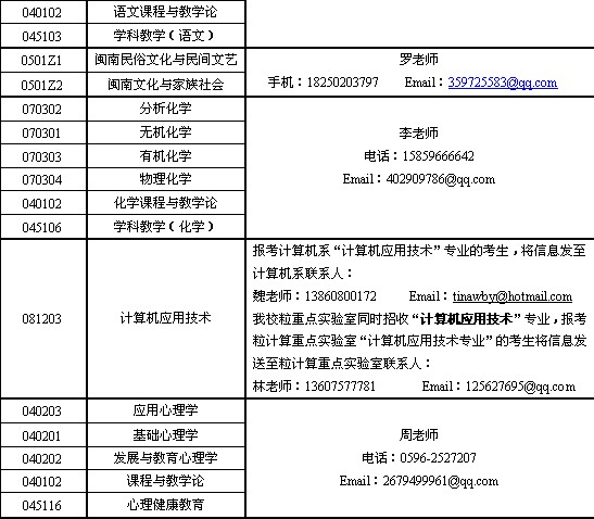 二、调剂程序: 1、意欲调剂到我校的考生,请填写《2013年漳州师范学院调剂申请表》 点击下载,以附件形式发送至各系联系人电子邮箱,考生在发送调剂信息表时,注意在主题栏目写上"调剂信息"字样。