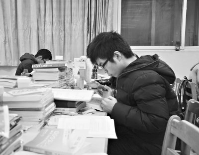 昨日下午5时许,武昌一所独立学院的学生正在图书馆备战考研。林翔 摄
