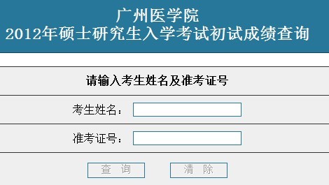 广州医学院2012年考研初试成绩查询已开通,详情如下: