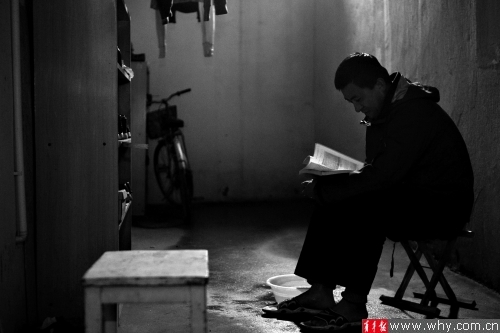 晚上下班后,李善来仍在努力读书。本报见习记者丁嘉摄