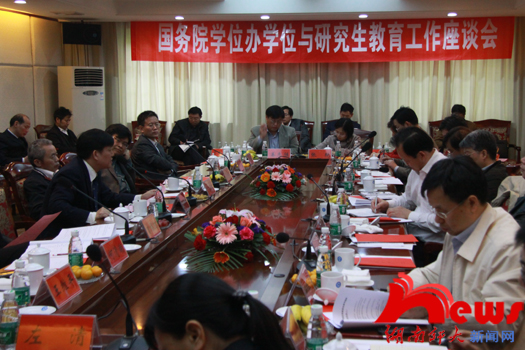 调研组成员广州大学副校长徐俊忠、华东师范大学高等教育研究所副所长韩映雄、江苏省学位办主任杨晓江、北京航空航天大学研究生院副院长陈小武、兰州大学研究生院副院长李兴业、国务院学位办处长徐维清、国务院学位办处长赵玉霞、国务院学位办郝彤亮、国务院学位办张艳及省部分研究生培养高校有关负责人等参加座谈会。