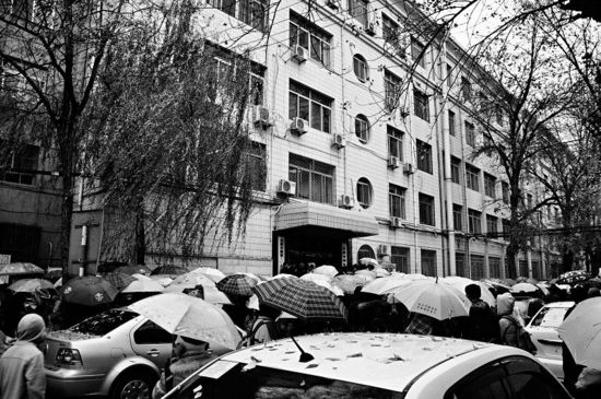 9时20分,记者来到府西街的旱西南二条巷。刚到巷子口,就看到巷子西侧便道上排满了打着雨伞的人群,而且队伍还在不断地增加。队伍中的一位学生说,今天是研究生考试现场确认的第一天,正好又是周末,“我想着早点过来,把事办完了就回家,没想到大家都是同样的想法,全撞到一块儿了。”
