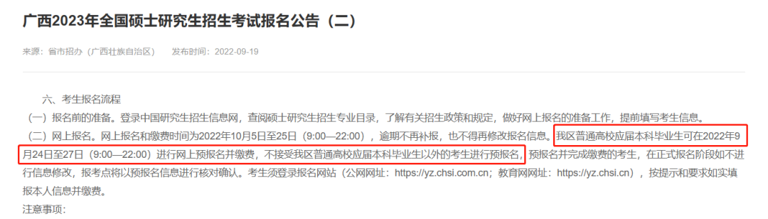 部分地区预报名只允许应届生报考,部分地区预报名全部公开,像23考研广西地区不接受除应届本科毕业生以外的考生进行预报名。