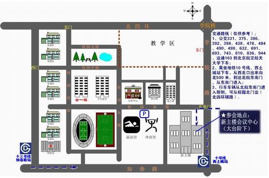 自驾:北航校园东南门、南门(新南门)为机动车辆双向通行校门;