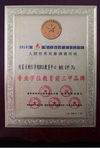 内蒙古财经学院MBA获专业学位教育“首府百姓最满意前三甲品牌”