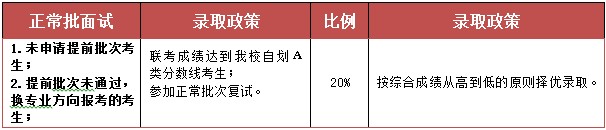 (1)面试资格:联考成绩达到我校自划A类分数线的考生可根据情况申请正常批面试。正常批次面试名额占录取总名额的约20%。